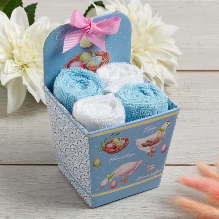 Набор махровых полотенец «Пасха» 30×30 см — 4 шт, 100% хлопок, 340 гр/м2