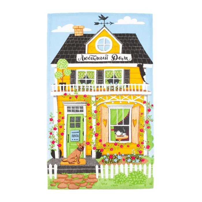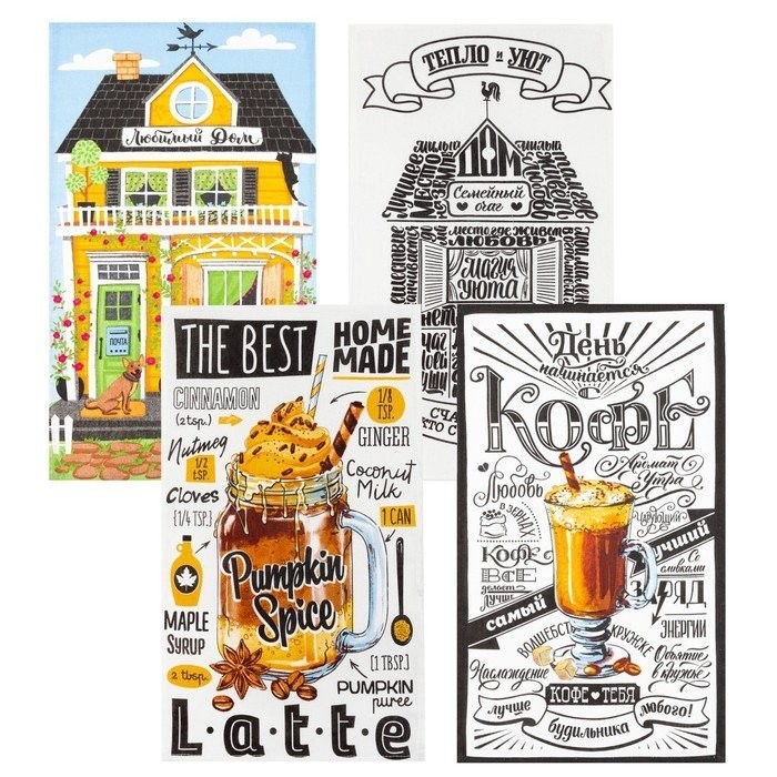 Набор кухонных полотенец Доляна «Любимый дом», 35х60см-4шт, 100% хл