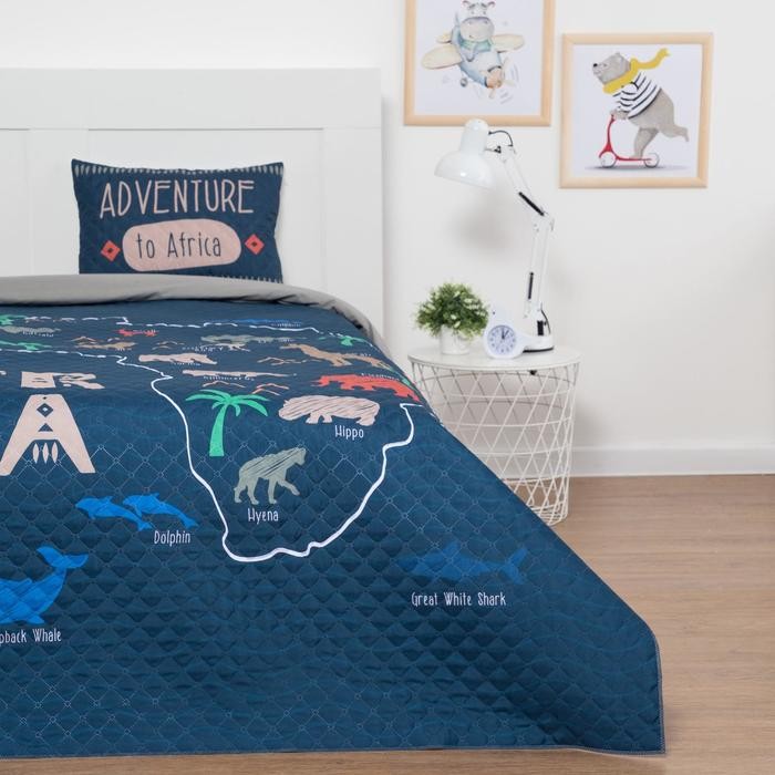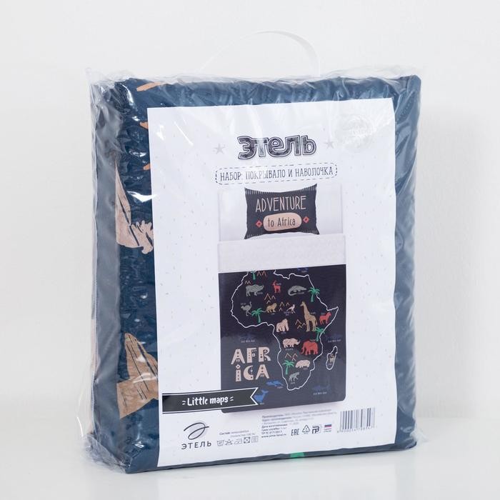 Покрывало детское и наволочка Этель 1,5 сп «Little maps», 145×210 ±5 см, 40×60 см, микрофибра
