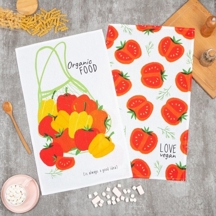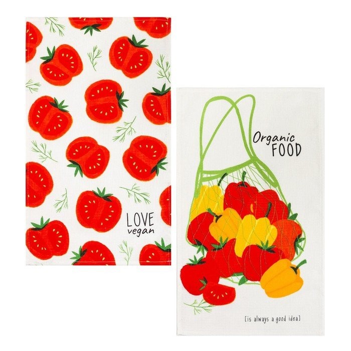 Набор кухонных полотенец Доляна Love vegan, 35х60см-2шт, 100% хл