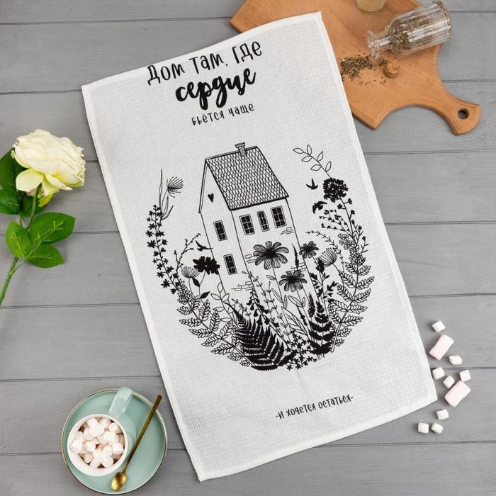 Полотенце кухонное Доляна «Дом там где сердце» 35×60 см, 100% хл, 160г/м2