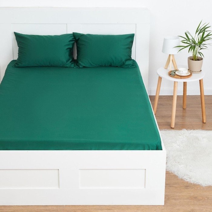Простыня на резинке Этель 160*200*25 см, цв.изумрудный, 100% хлопок, мако-сатин, 125 г/м²