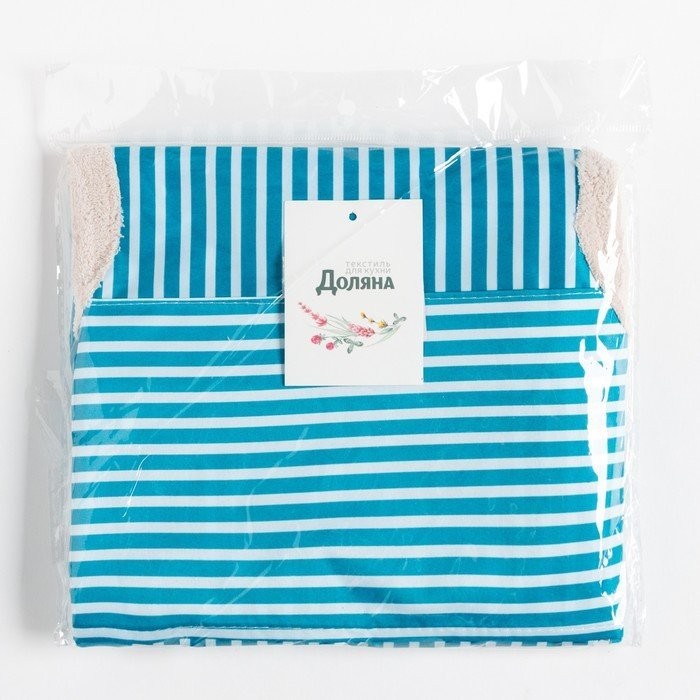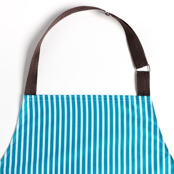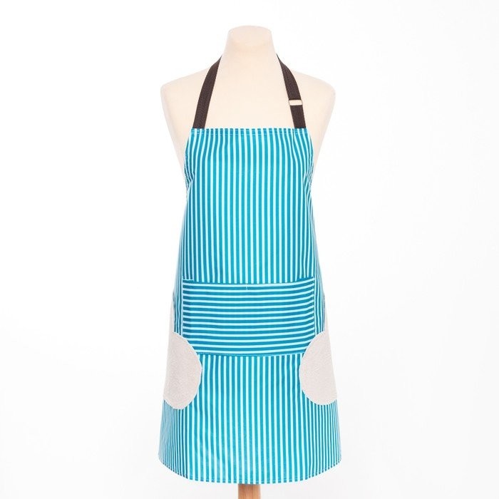 Фартук Доляна с карманами в полоску цв.синий, 70*65 см, 100% п/э