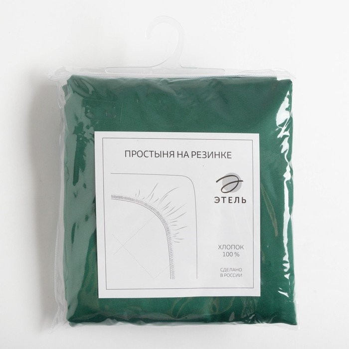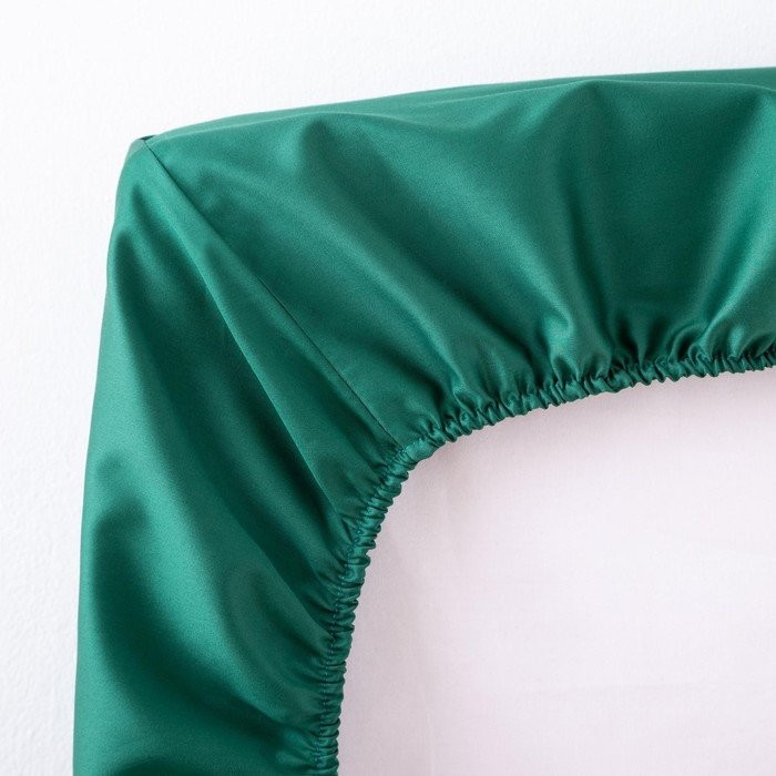 Простыня на резинке Этель 180*200*25 см, цв.изумрудный, 100% хлопок, мако-сатин, 125 г/м²